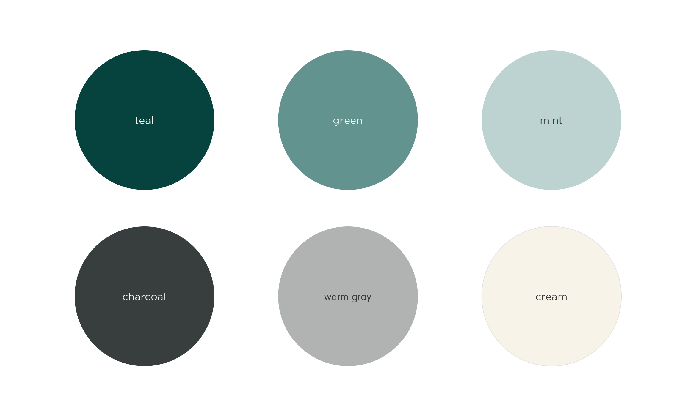 The brand color palette is warm, inviting and neutral to juxtapose nicely with project photography. Green symbolizes growth, while cream and charcoal are clean and crisp.